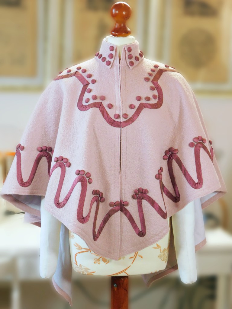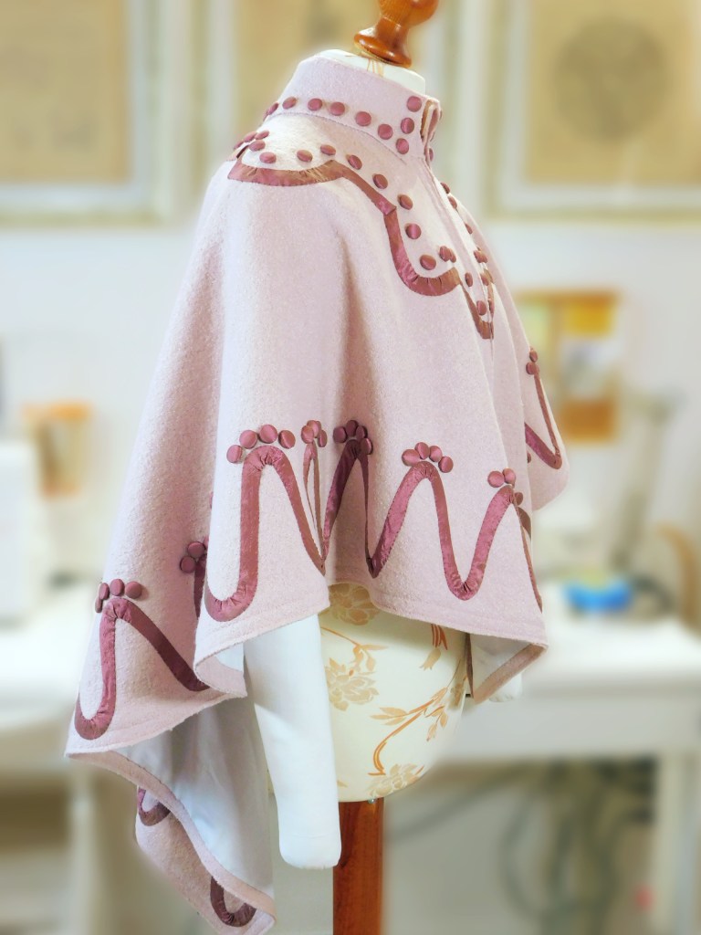 The cape also has tons of covered buttons and a nice collar which stands on its own.