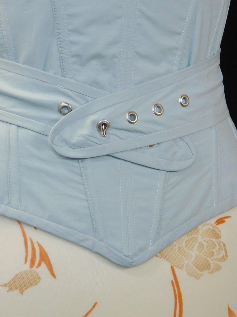 Originally made in fine wool, I made mine in thin cotton and a layer of coutil. This corset is one of the comfiest I’ve ever worn since it’s light boned and has two srips which close on the front that gently wrap the waist without too much waist compression.